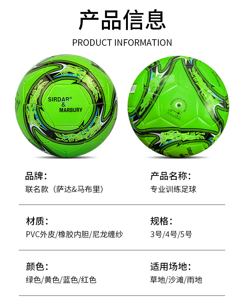 正品儿童足球新款绿色4号5号小学生初中生中考专业训练比赛专用球