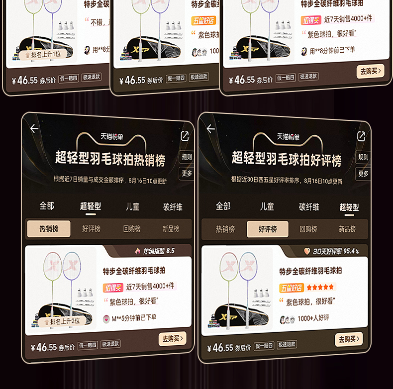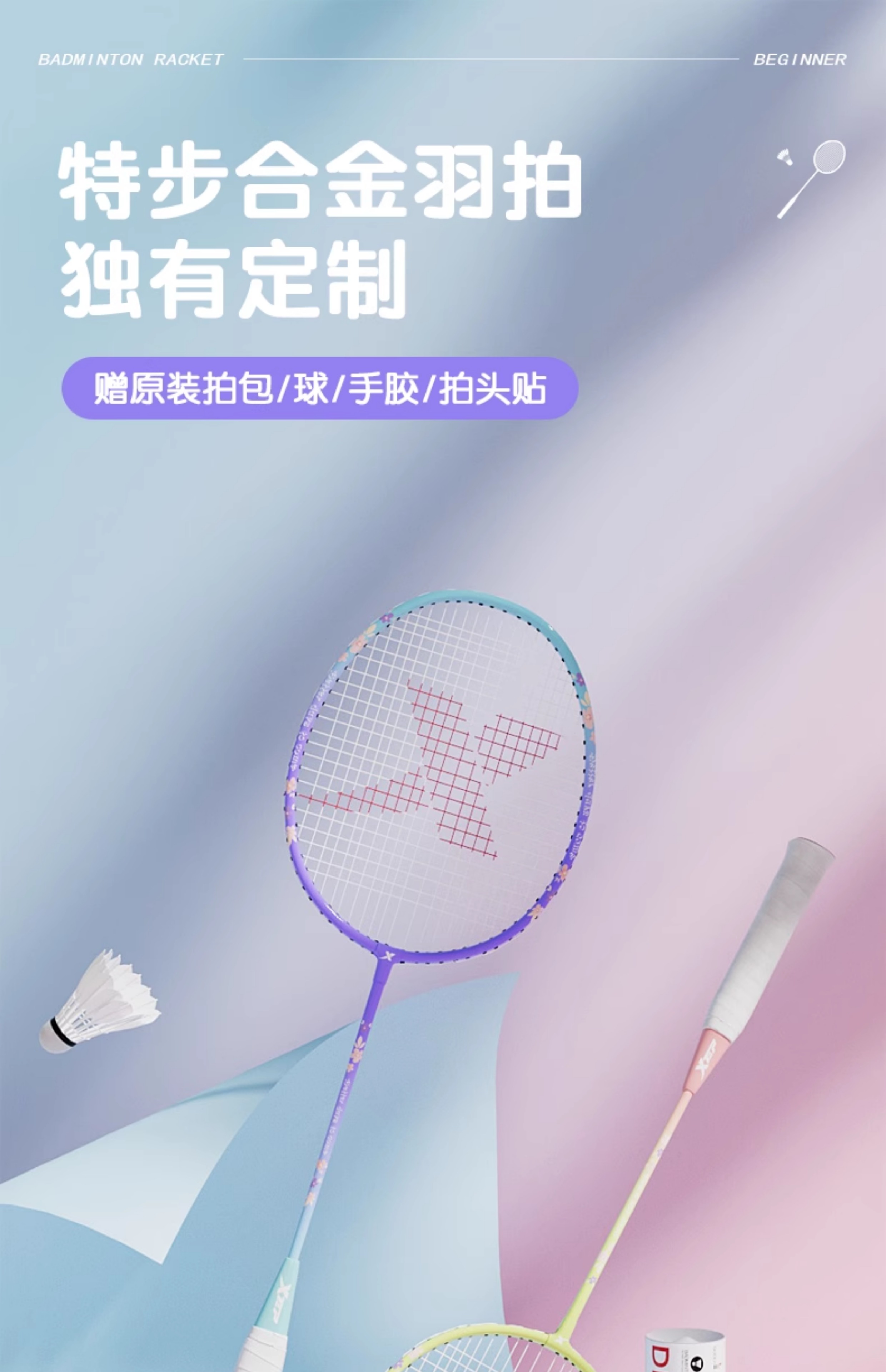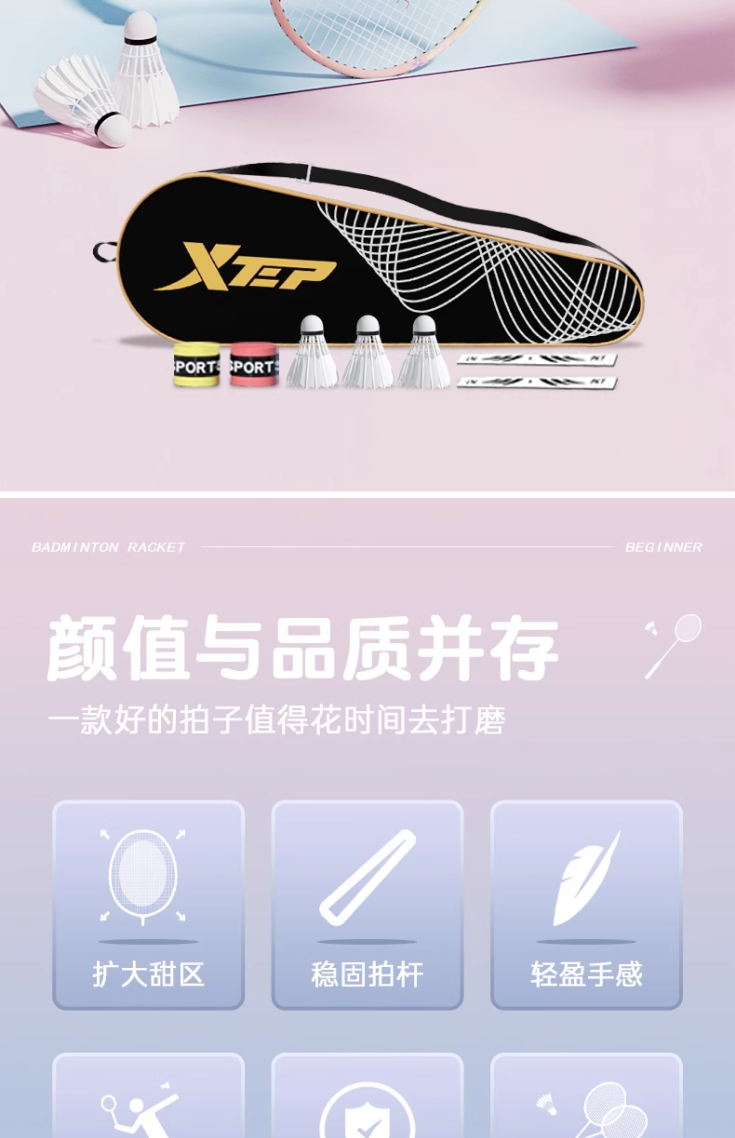 特步羽毛球拍正品旗舰店全碳素纤维男成人女生双拍装备儿童套装