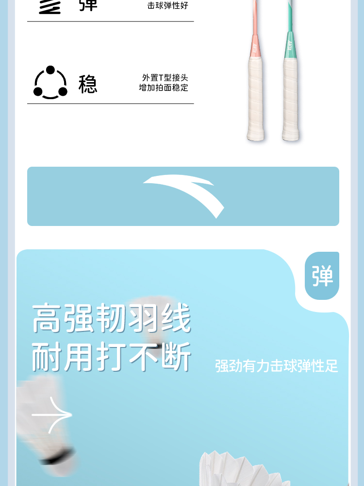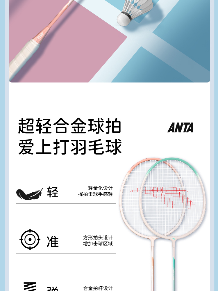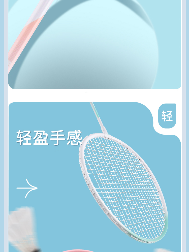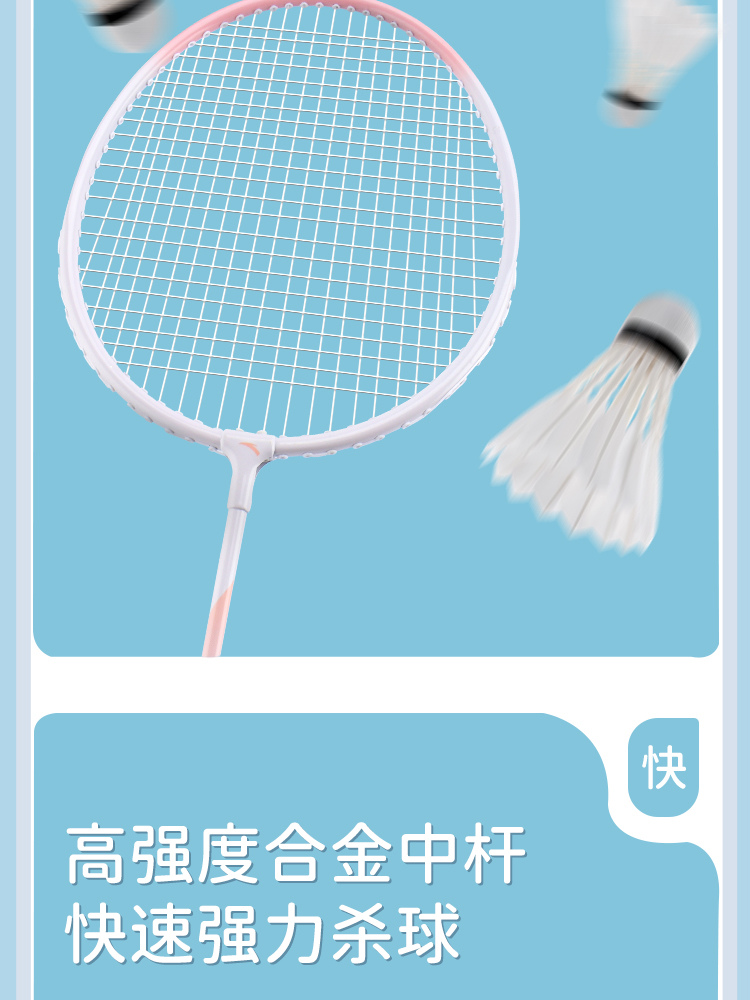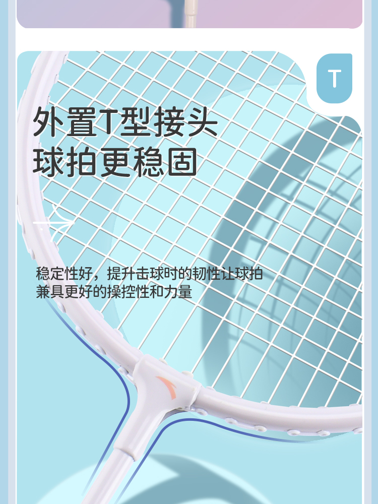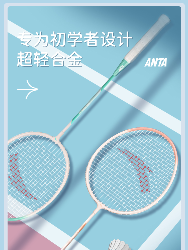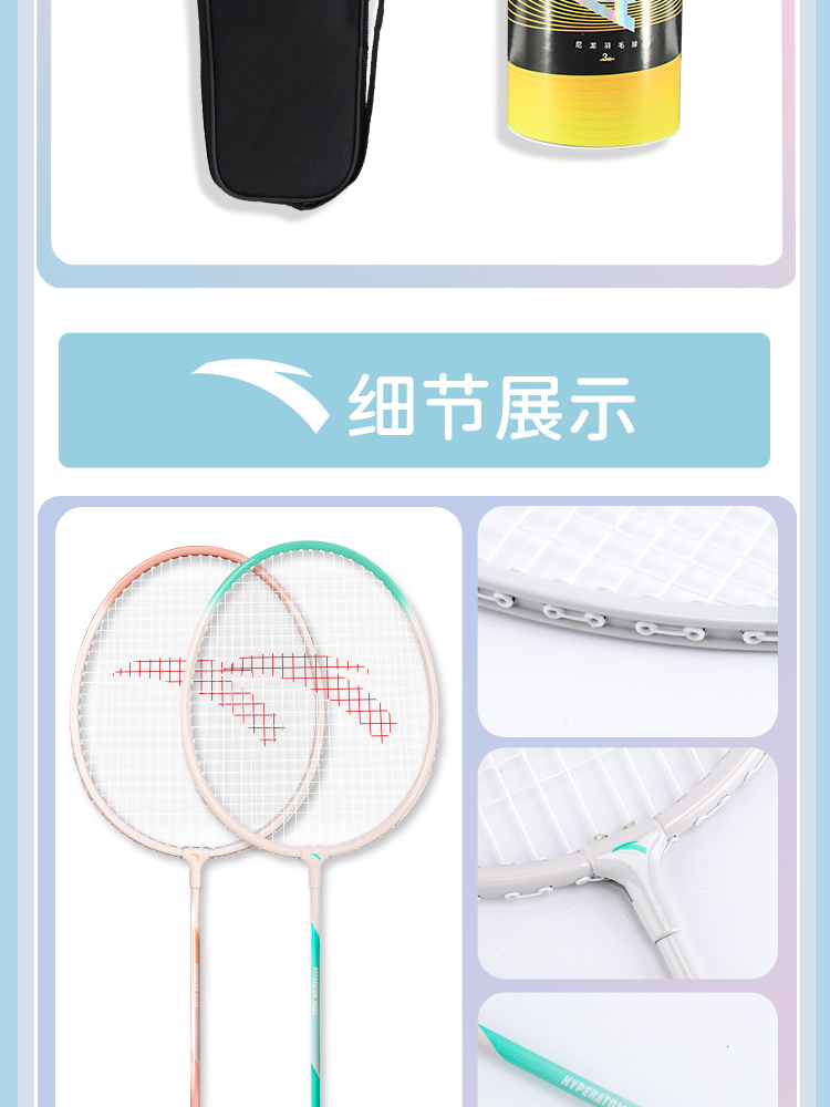安踏正品羽毛球拍套装双拍旗舰店女生成人专业耐打全碳素纤维单拍